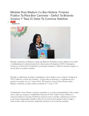 Durante conferencia di Prensa e siman aki Minister di Finansa a trece dilanti cu ela ricibi