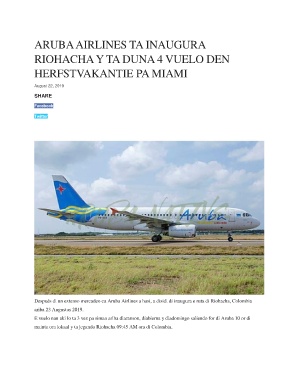 ARUBA AIRLINES TA INAUGURA