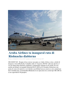 den Colombia mes. E destinashon Riohacha lo ser opera door di e avión tipo CRJ-200 Jet