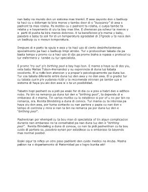 nobo. Pa bin na remarca pa duna luz den e “birthing pool”, ta depende di e
