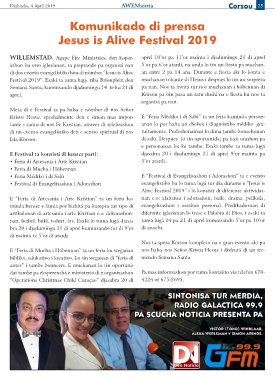 di dos evento evangelístiko bòu di nòmber ”Jesus is Alive an entre 2 pa 14 aña. Durante e fiesta aki lo konta e