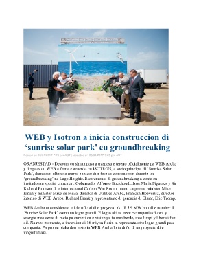 WEB Aruba ta considera e inicio oficial di e proyecto aki di 5.9 MW bou di e nomber di
