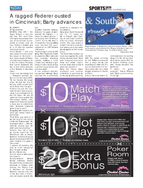 took advantages of Feder- that included smashing the tennis was there," Barty With the crowd cheering slipped to No. 65, her low-