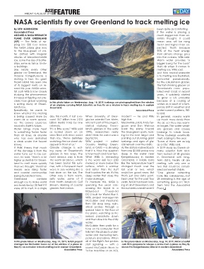 is eating away at Green- of an airplane carrying NASA Scientists as they fly on a mission to track melting ice in eastern waters as a result of a tem-