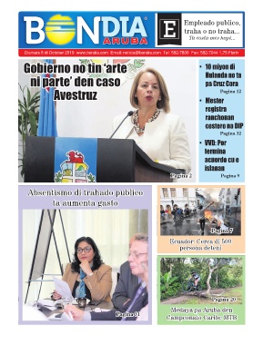 Diamars 8 di October 2019 www.bondia.com Email: noticia@bondia.com Tel: 582-7800 Fax: 582-7044 1,75 Florin