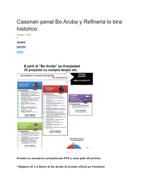 Casonan penal Bo Aruba y Refineria lo bira historico October 7, 2019 0 SHARE Facebook Twitter - Advertisement - Prueba cu acusacion proyectonan PPS a nace pafo di politica *Rapport di 1.6 Biyon di Bo Aruba ta prueba oficial pa Fiscalnan