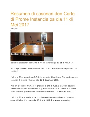 Resumen di casonan den Corte di Prome Instancia pa dia 11 di Mei 2017