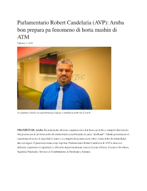 den nos region. E presentacionnan a bay hopi bon. Parlamentario Robert Candelaria di AVP a sinta cu e