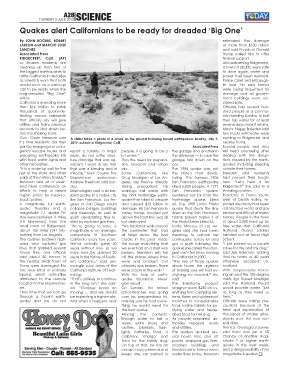 the nearby small town of ern California,” said seis- were and cracked. Our “The size of those quakes otherwise escaped un-