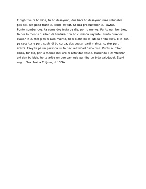 E high five di bo bida, ta bo desayuno, dus haci bo desayuno mas saludabel