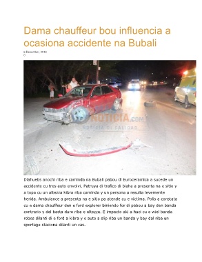 accidente cu tres auto envolvi. Patruya di trafico di biaha a presenta na e sitio y