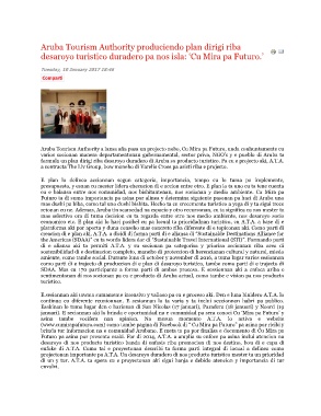 projectonan importante pa A.T.A. Un desaroyo duradero di nos producto turistico mester ta un prioridad