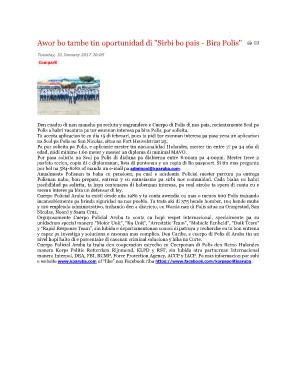 Polis a habri vacatura pa tur esunnan interesa pa bira Polis, por solicita.