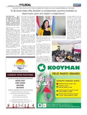di Aruba encuanto Turismo y durante e presentacion. Sra. cu bo kier pa loke bo haci