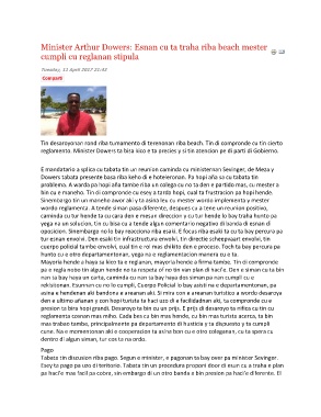 Minister Arthur Dowers: Esnan cu ta traha riba beach mester