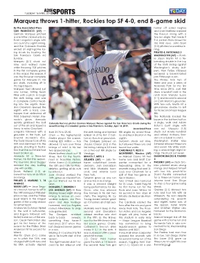 PHILLIES 3, MARLINS 1, 14 gle but finished out his first and six hits in six innings. Tyler O’Neill also homered Arizona beat San Diego