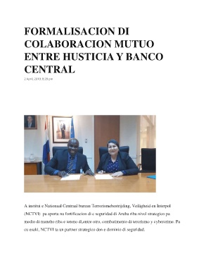 (NCTVI) pa aporta na fortificacion di e seguridad di Aruba riba nivel strategico pa