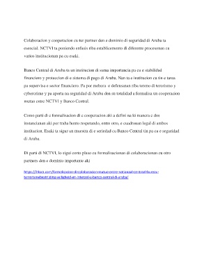 Colaboracion y cooperacion cu tur partner den e dominio di seguridad di Aruba ta