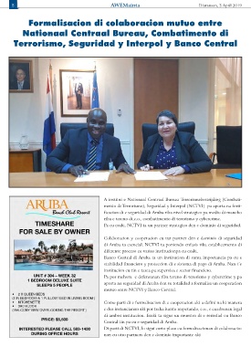 aporta na seguridad di Aruba den su totalidad a formalisa un cooperacion