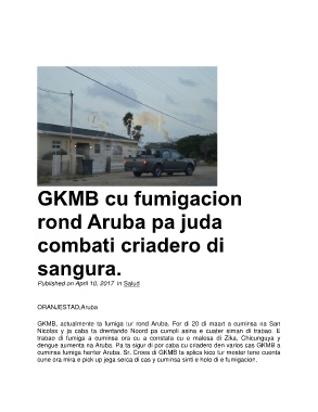 cuminsa fumiga henter Aruba. Sr. Croes di GKMB ta splica kico tur mester tene cuenta