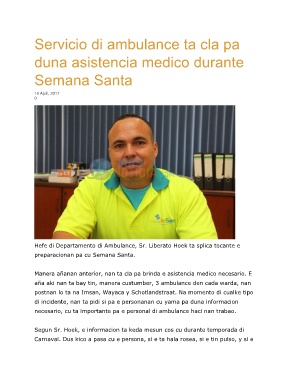 Hefe di Departamento di Ambulance, Sr. Liberato Hoek ta splica tocante e