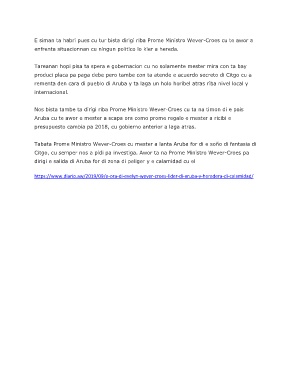 rementa den cara di pueblo di Aruba y ta laga un holo horibel atras riba nivel local y