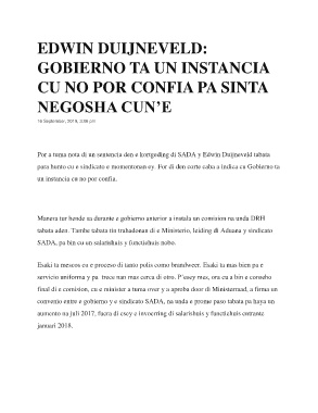 convenio entre e gobierno y e sindicato SADA, na unda e prome paso tabata pa haya un