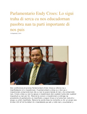presidente di parlamento un manifesto y segun Croes el a tuma bon nota di e