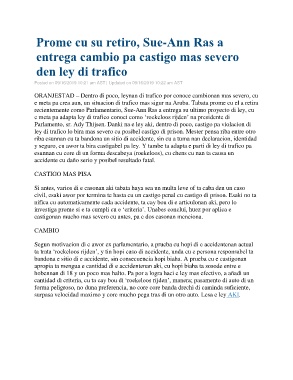y seguro, cu awor ta bira castigabel pa ley. Y tambe ta adapta e parti di ley di trafico pa
