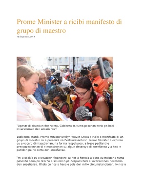 Diabierna atardi, Prome Minister Evelyn Wever-Croes a ricibi e manifesto di un