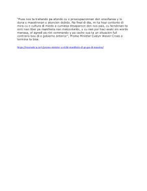contrario bou di e gobierno anterior”, Prome Minister Evelyn Wever-Croes a