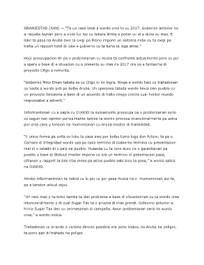 ORANJESTAD (AAN) — “Ta un caos total a wordo crea te cu 2017. Gobierno anterior no