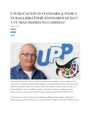 situacion di Aruba, si nos kier keda kere den un instancia internacional manera un “Standard & Poor’s”.