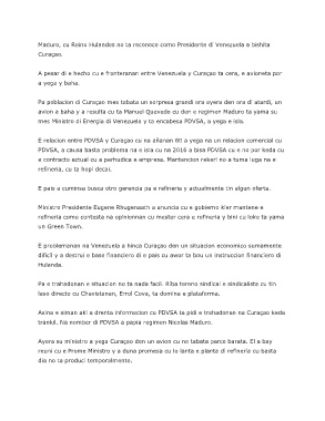 Asina e siman aki a drenta informacion cu PDVSA ta pidi e trahadonan na Curaçao keda