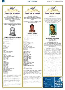 Aurora funeral Home di 9’or pa 11’or di mainta. Ta invita pa acto di despedida cual lo tuma lugar na