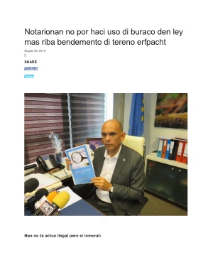 Notarionan no por haci uso di buraco den ley mas riba bendemento di tereno erfpacht August 29, 2019 0 SHARE Facebook Twitter - Nan no ta actua ilegal pero si inmoral: