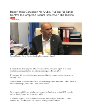 Raport Riba Corupcion Na Aruba, Publica Pa Banco