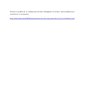 Minister ta gradici Sr. R. Gradus pa a brinda e delegacion di Aruba e oportunidad pa por a encontra cu su persona. https://www.diario.aw/2019/08/raymond-gradus-di-caft-a-haya-raportahe-di-scp-for-di-minister-croes/