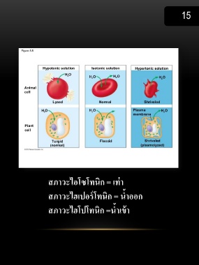 15 สภาวะไอโซโทนิก = เท่า สภาวะไฮเปอร์โทนิก = น ้าออก สภาวะไฮโปโทนิก =น ้าเข้า