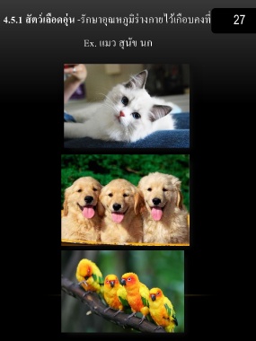 4.5.1 สัตว์เลือดอุ่น -รักษาอุณหภูมิร่างกายไว้เกือบคงที่ 27 Ex. แมว สุนัข นก