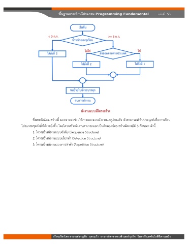 โปรแกรมชุดค ำสั่งได้ง่ำยยิ่งขึ้น โดยโครงสร้ำงผังงำนสำมำรถแยกเป็นลักษณะโครงสร้ำงผังงำนได้ 3 ลักษณะ ดังนี้