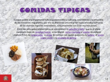 Caracas posee una importante cultura gastronómica y culinaria, esto debido a la influencia