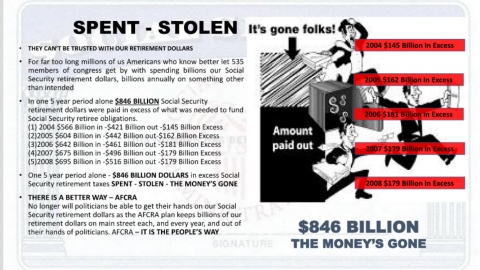Security retirement taxes SPENT - STOLEN - THE MONEY’S GONE 2008 $179 Billion In Excess