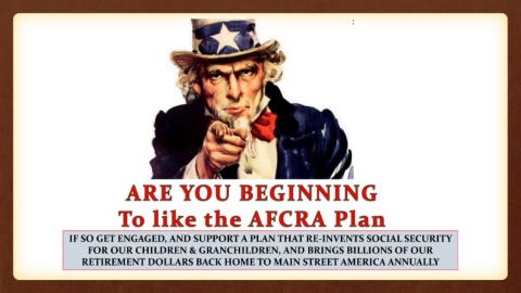 IF SO GET ENGAGED, AND SUPPORT A PLAN THAT RE-INVENTS SOCIAL SECURITY FOR OUR CHILDREN & GRANCHILDREN, AND BRINGS BILLIONS OF OUR RETIREMENT DOLLARS BACK HOME TO MAIN STREET AMERICA ANNUALLY