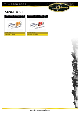 (18) 3522 9002 Mon Ami Vermilogic Plus 25 Pasta 5grs Vermilogic Plus 50 Pasta 5grs (caes Peq/medio Port (caes Grande Porte) VERMIF./CAES/ORAL VERMIF./CAES/ORAL Embalagem: 24 unidades Embalagem: 24 unidades www.domaagropecuaria.com