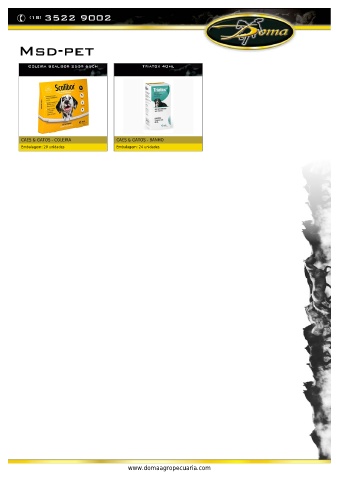 (18) 3522 9002 Msd-pet Coleira Scalibor 25gr 65cm Triatox 40ml CAES & GATOS - COLEIRA CAES & GATOS - BANHO Embalagem: 20 unidades Embalagem: 24 unidades www.domaagropecuaria.com