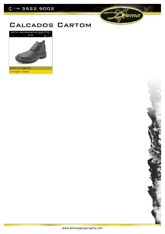 (18) 3522 9002 Calcados Cartom Botina Monodensidade Bico Pvc - N.44 BOTAS DE TRABALHO Embalagem: 1 unidade www.domaagropecuaria.com