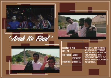 ‘ Arah Ke Final ‘ format : h.264 ABOUT 3 BESTFRIEND fps : 24 WHICH IS DIFFERENT RACES AND RELIGION software : adobe RECAPTURED THE premiere MOMENT WHEN 3 OF THEM WATCH FOOTBALL duration : 9 minutes TOGETHER.