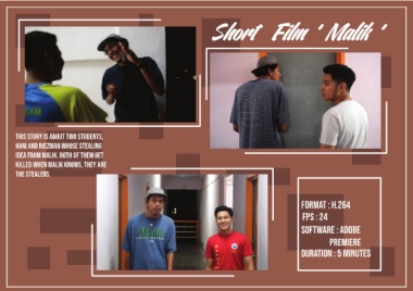 Short Film ‘ Malik ’ this story is about two students, hani and riezman whose stealing idea from malik. both of them get killed when malik knows, they are the stealers. format : h.264 fps : 24 software : adobe premiere duration : 5 minutes