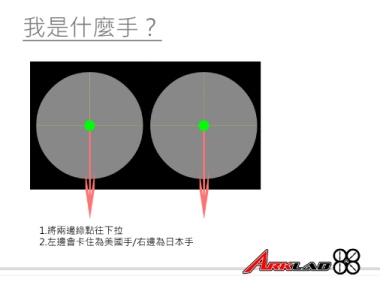 我是什麼手? 1.將兩邊綠點往下拉 2.左邊會卡住為美國手/右邊為日本手